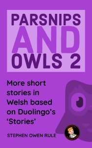 Doctor Cymraeg (Twitter: @CymraegDoctor) is back with some more short stories to aid in your transition between learning Welsh on Duolingo (and/or elsewhere) and using the language in the wild. In contrast to the book’s first iteration, the Stories in Parsnips and Owls 2 are slightly more challenging and include fewer clues and translations. No matter how you’re learning the language of the heavens, you’ll definitely find plenty of interesting tips and tricks in this book. Once again based on Duolingo’s Stories, here are 50 more stories adapted into Welsh to aid your learning.
